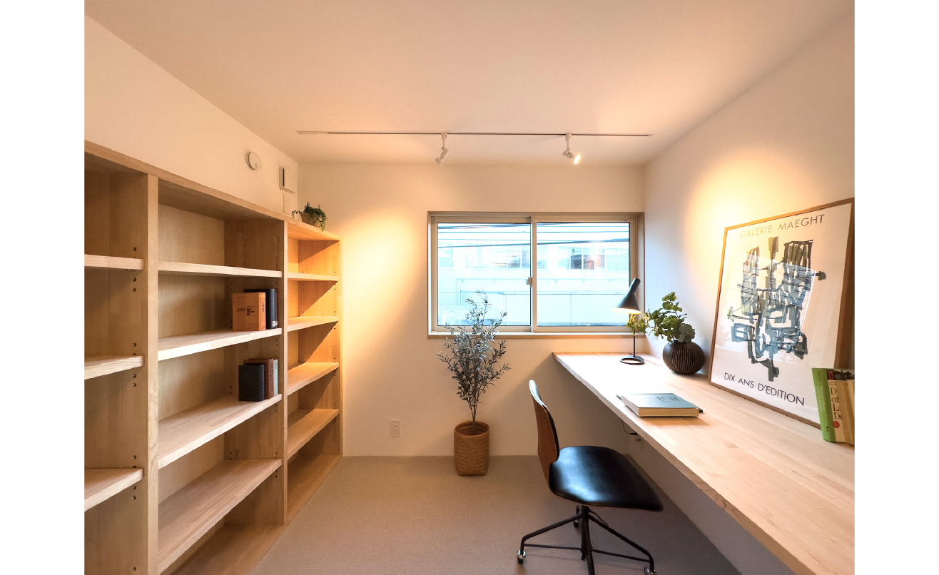 主寝室や共用部とは距離を保ち、仕事と生活のリズムを切り替えやすい配置とした点も、この住まいの合理性を象徴しています。