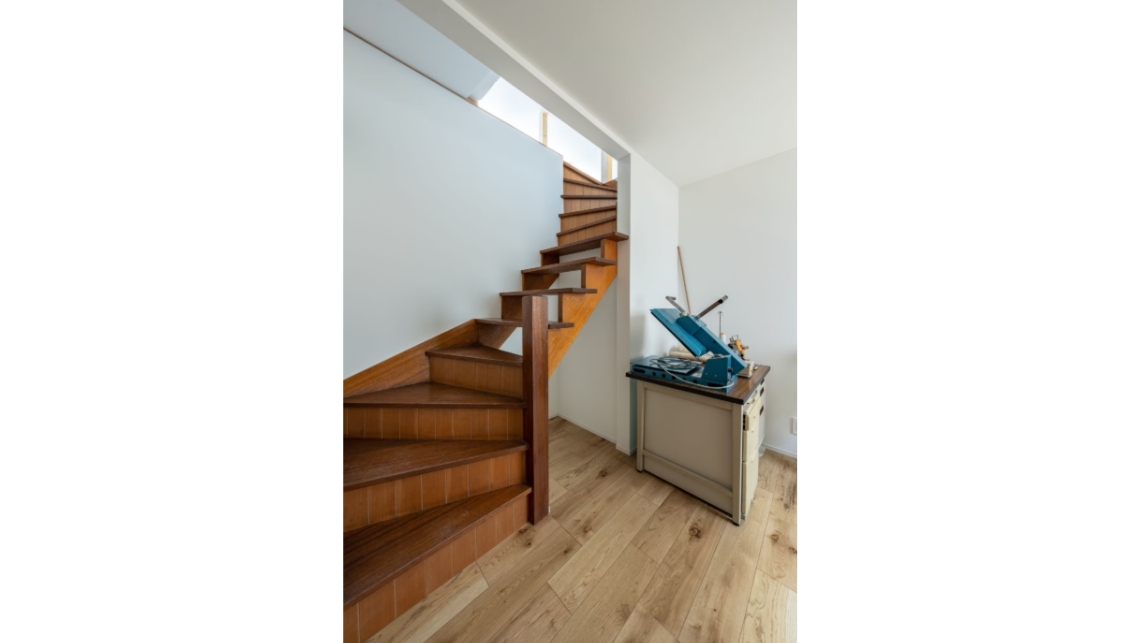 以前の住まいで使われていた階段はそのまま残し、上部の窓の開閉用に改修。通風が確保され、特に夏場には風が流れ、快適に過ごせます。