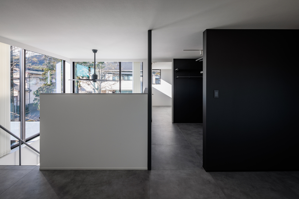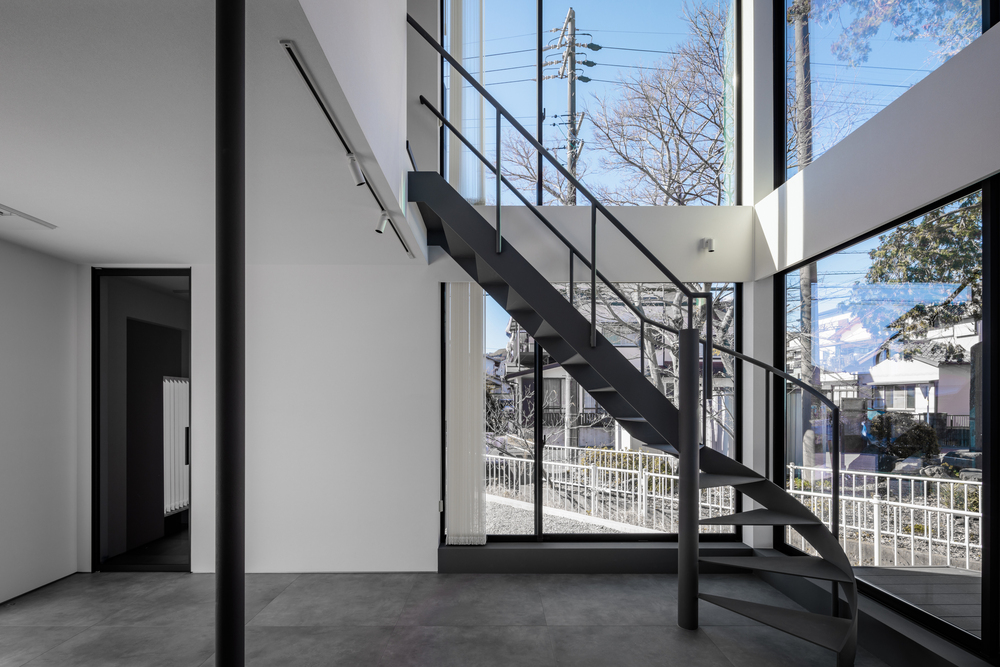 また、大開口を通して背の高い木や空を借景することで、自然の要素を間接的に取り入れています。