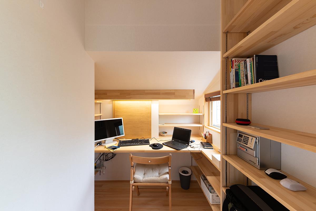 2階の一角に、2畳弱の空間に設えたワークスペースです。