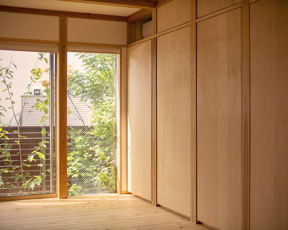 また、窓と鴨居、方立(ほうだて)、柱が空間として調和するように設計しているため、既製品の窓があたかも自然に収まっているような、オーダーメイドのような一体感を演出しています。