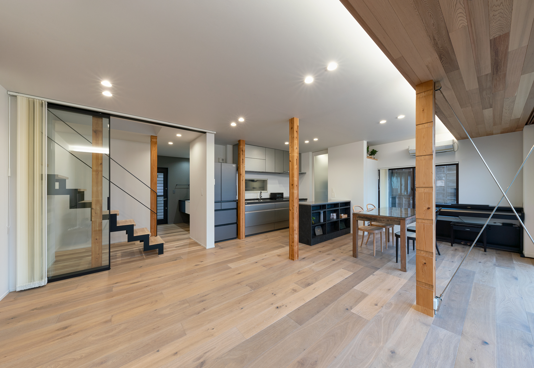 プロの住宅レシピ 和モダンリフォーム ガラス建具でLDKとつながるシースルー階段