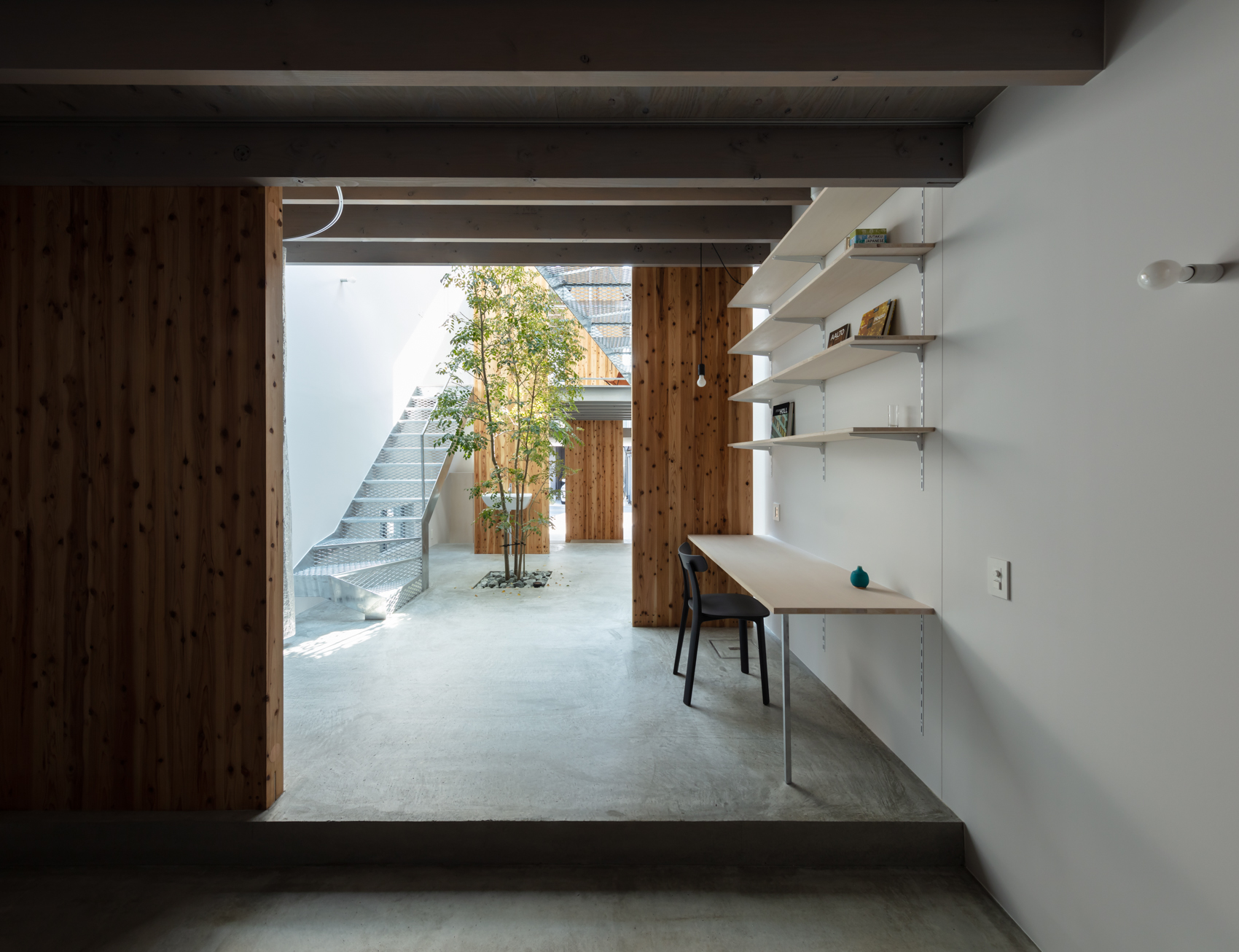 長屋の1区画の住宅としてできること。そしてお施主様の希望である「生活感を感じない住み方」。この2つの要素を大切に設計しています。
