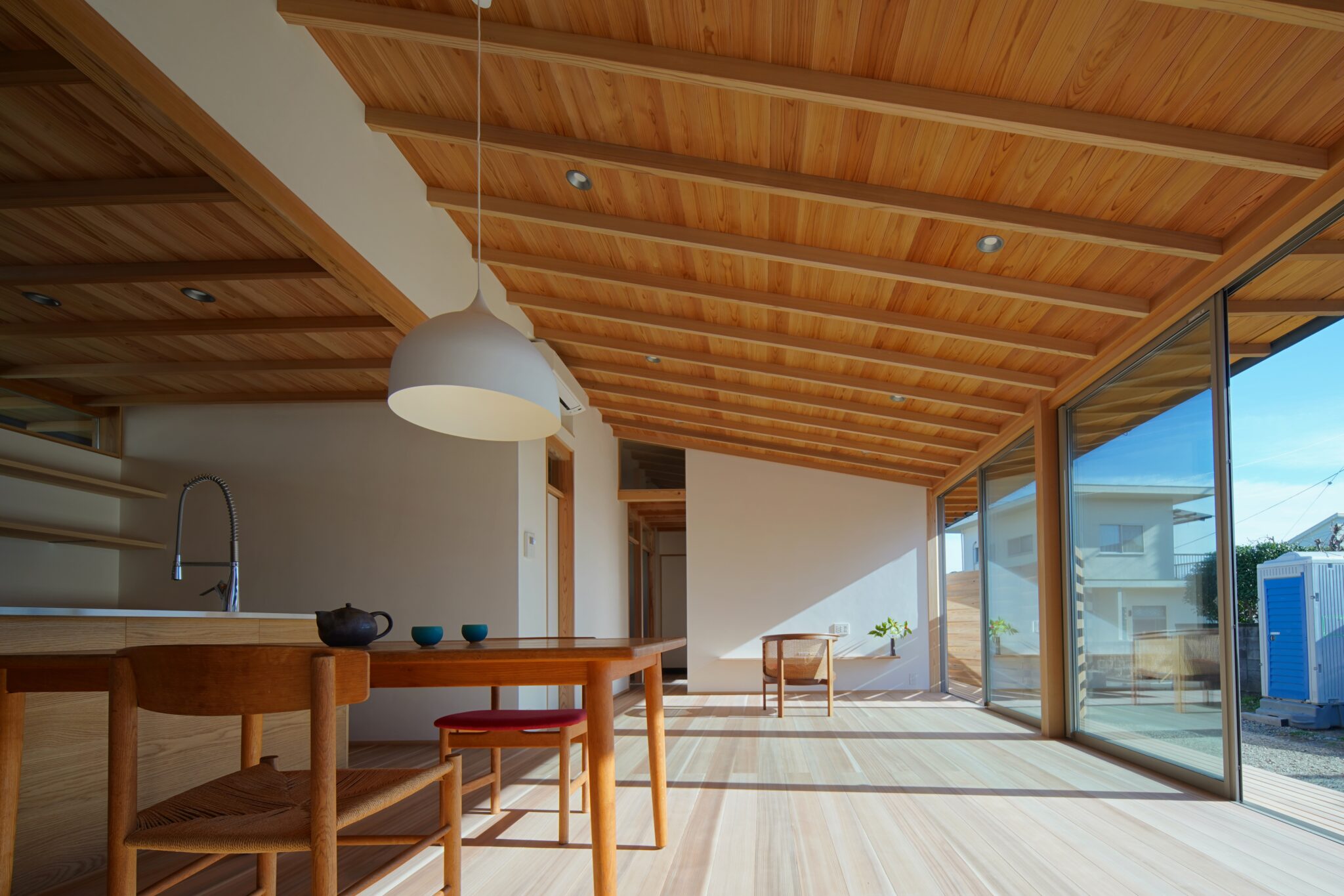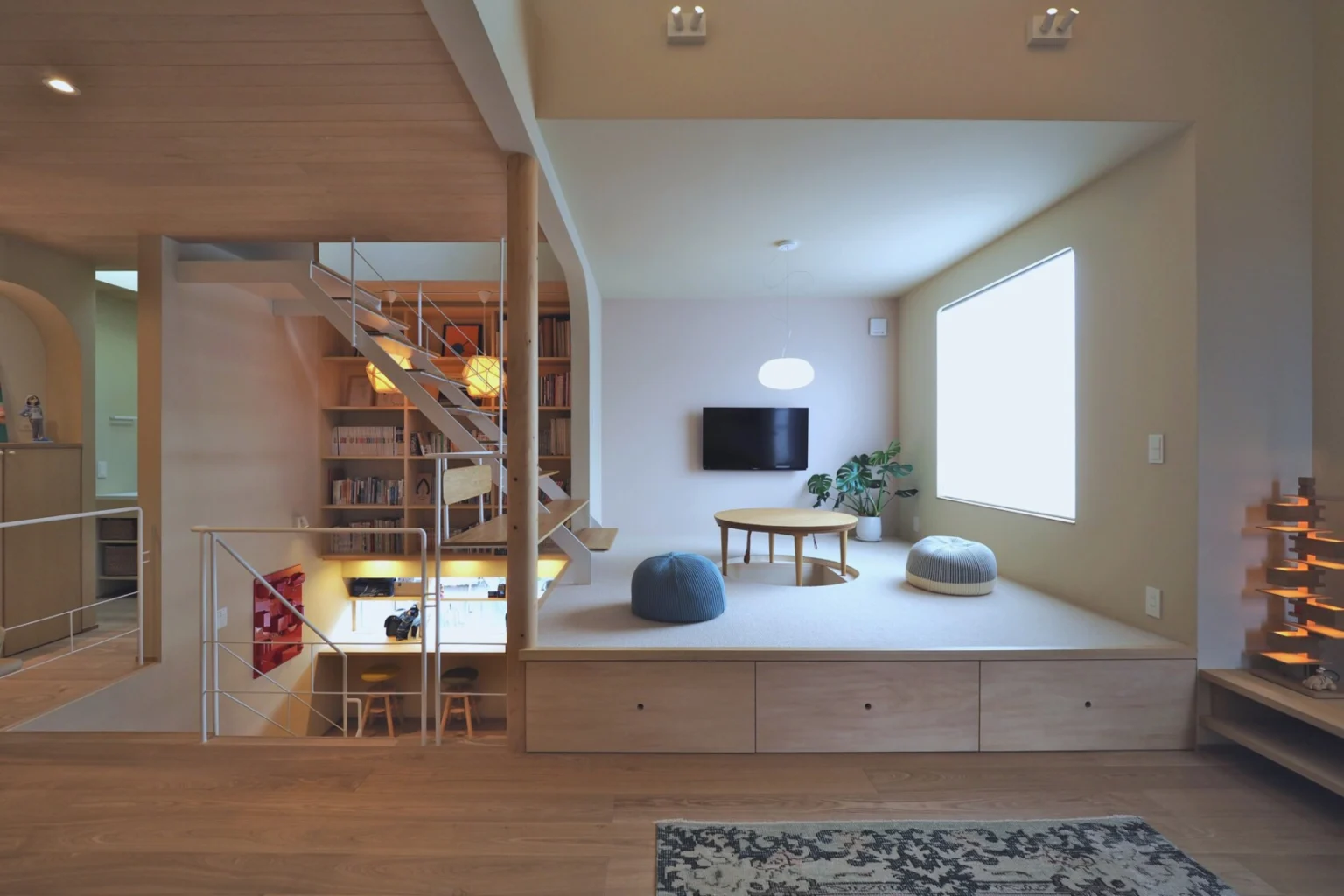 小さな吹き抜けとアウトドアリビングで広がる住まい